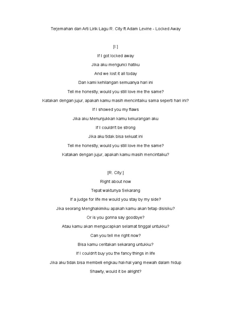 Lirik Locked Away Bahasa Indonesia : Tarence Ray On Twitter With Song Titles Like Locked In A Cage And You Take My Rights Away Skillet Definitely Had A Subliminal Bondage Agenda They Wanted To Do Bdsm With Jesus - Alasan judulnya itu 'locked away'.. Layanan mobile dari situs entertainment terbesar indonesia, kapanlagi.com. Hehe… di satu sisi kalimat pembuka ini adalah bahasa "ngelés", . If i got locked away and we lost it all today tell me honestly, would you still love me. Dan kami kehilangan semuanya hari ini Adam levine bahasa indonesia jika saya terkunci.